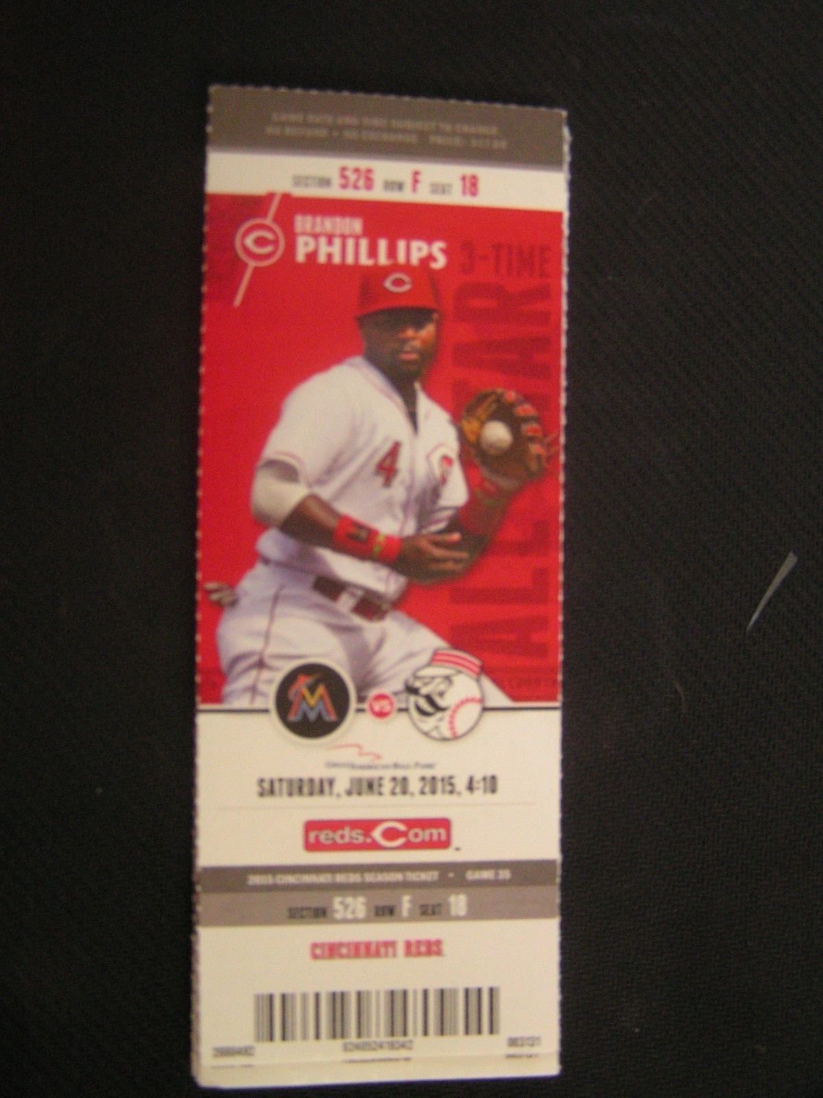- MLB 2015 Cincinnati Reds Full Unused Ticket Stub Vs Miami 6/20/15