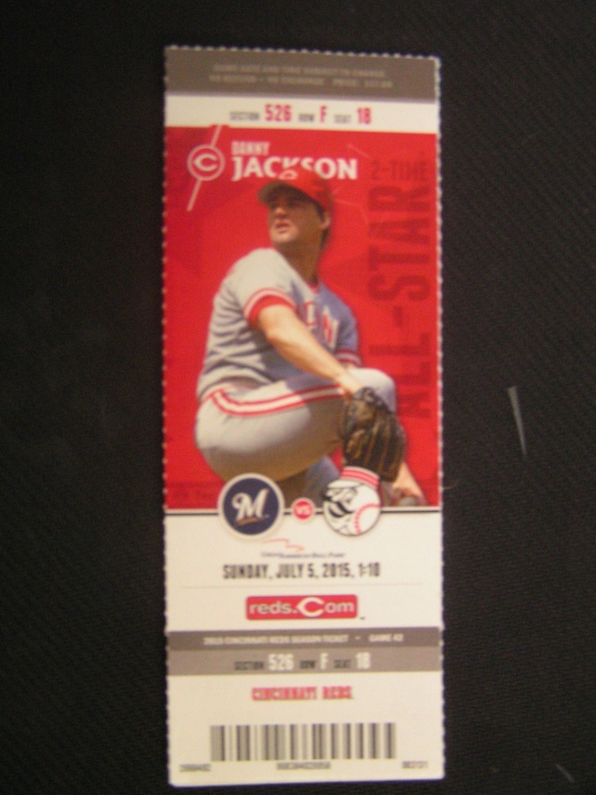 - MLB 2015 Cincinnati Reds Full Unused Ticket Stub Vs Milwaukee 7/5/15