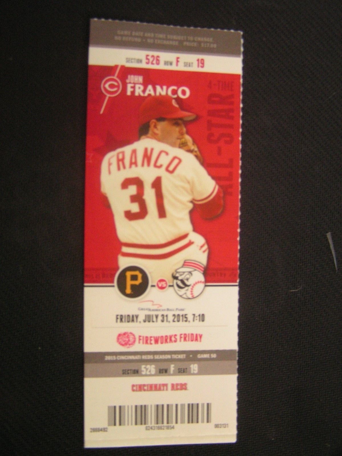 - MLB 2015 Cincinnati Reds Full Unused Ticket Stub Vs Pittsburgh 8/31/15