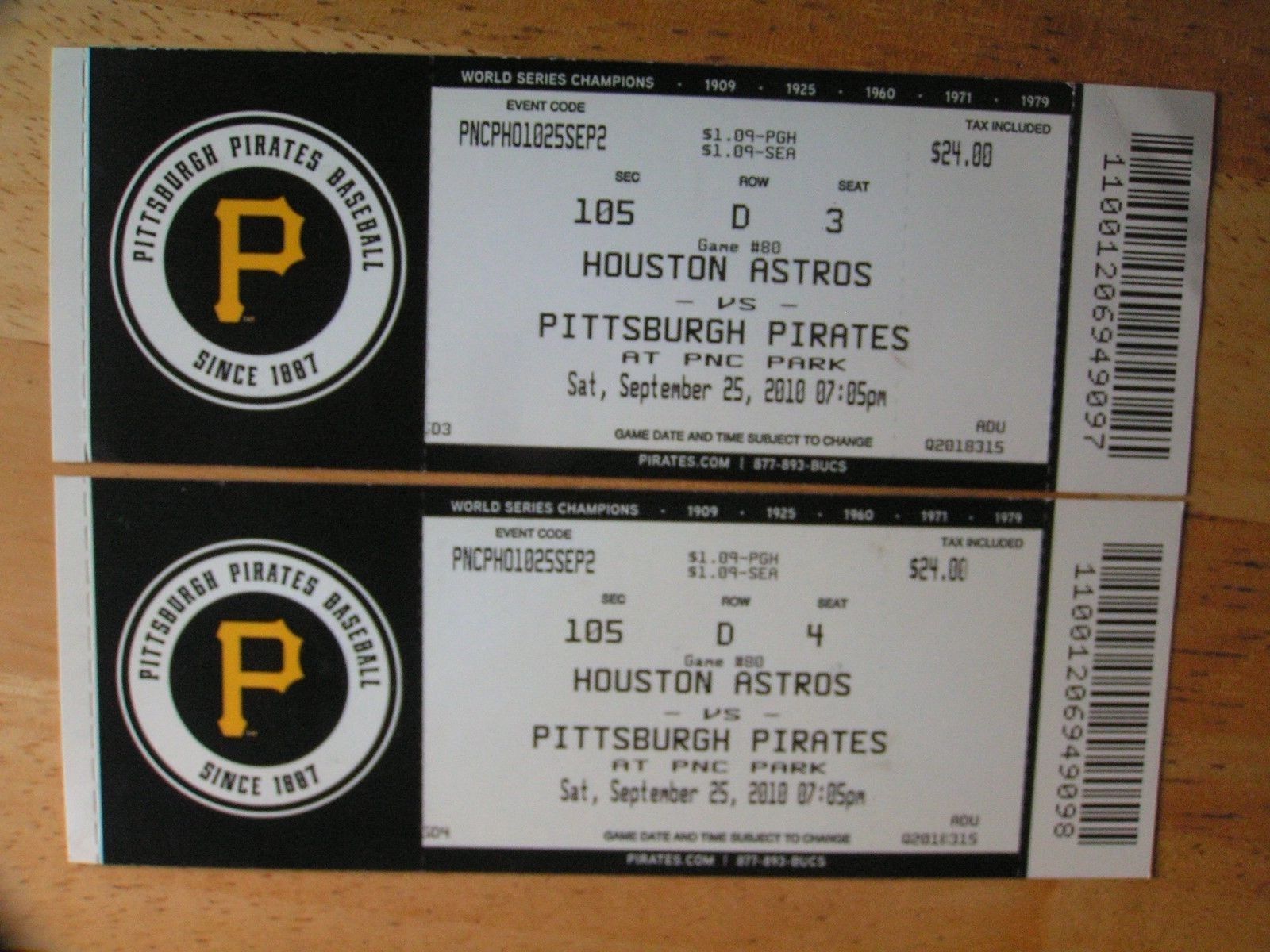 - MLB Pittsburgh Pirates Vs Houston Astros 9/25/2010 Ticket Stubs Lot Of 2