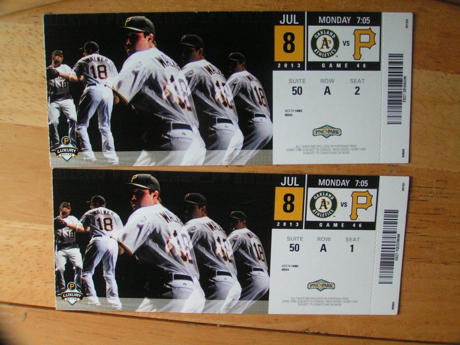 MLB Pittsburgh Pirates Vs Oakland A's 7/8/2013 Ticket Stubs Lot Of 2