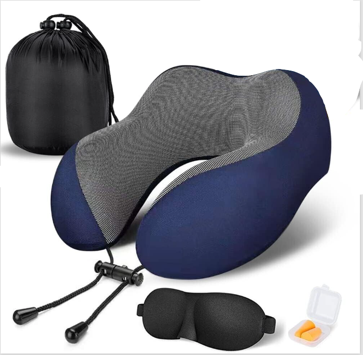 - MLVOC Travel Neck Pillow 100% Memory Foam Machine Washable Travel Kit BLUE