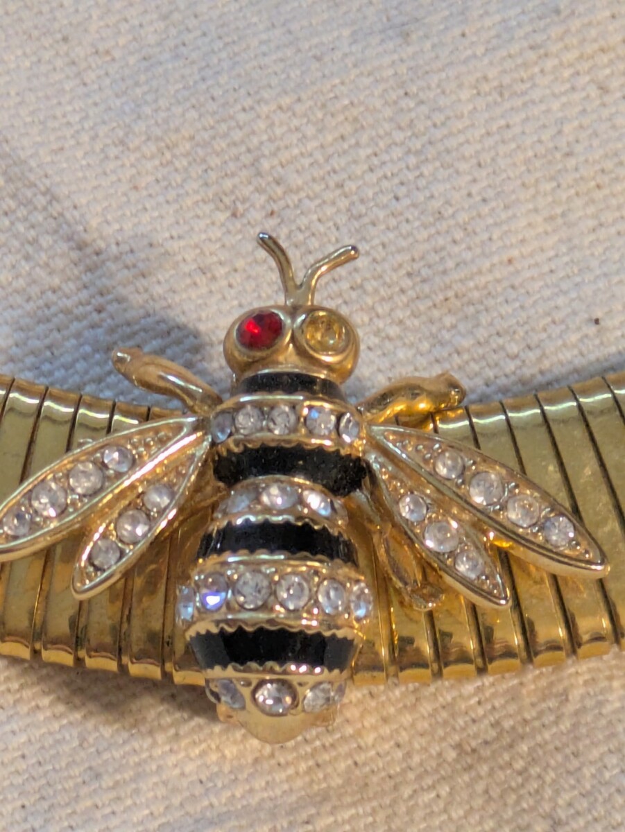 - MMA Sliding Bee Pendant Necklace Russian Collection Gold Tone Snake Chain Insect