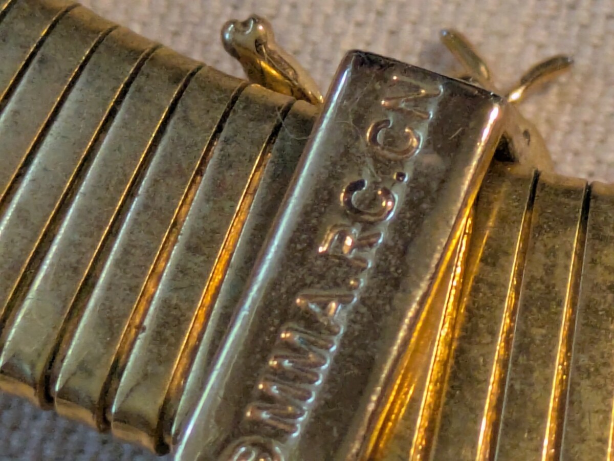 The MMA Sliding Bee Pendant Necklace from the Russian Collection features a gold-tone snake chain with a unique insect pendant. This piece, designed by the Metropolitan Museum of Art, offers a stylish and intricate accessory that showcases a blend of vintage and antique jewelry elements. The slide closure adds a touch of elegance to the chain, making it a standout piece in the jewelry collection.