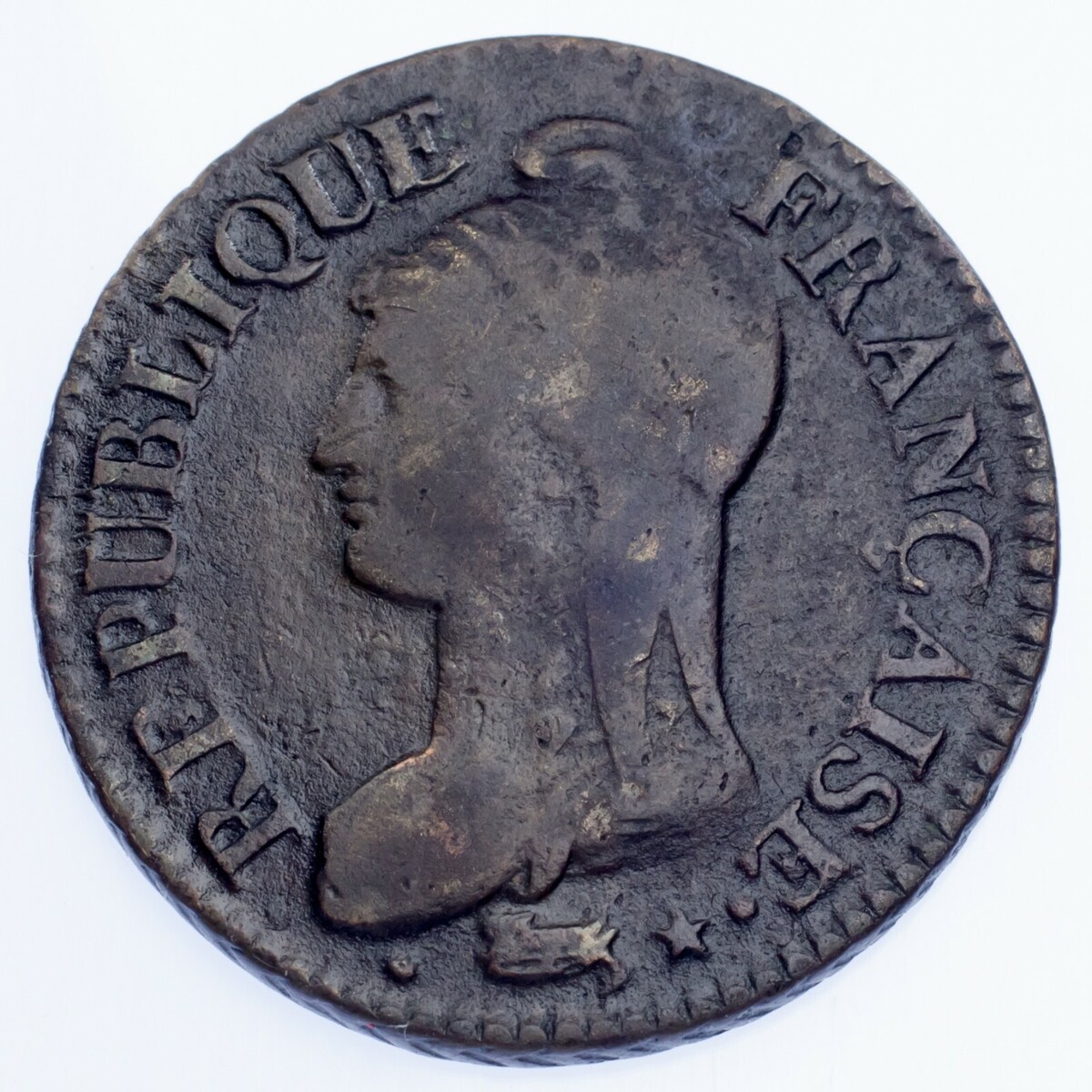 MONEDA De CENTIMES De FRANCIA LAN 7 (1798-99) (VF) Muy Buena KM# 646