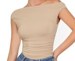 - MOOSLOVER Women Off Shoulder Double Lined Fitted Crop Top Nude Size M