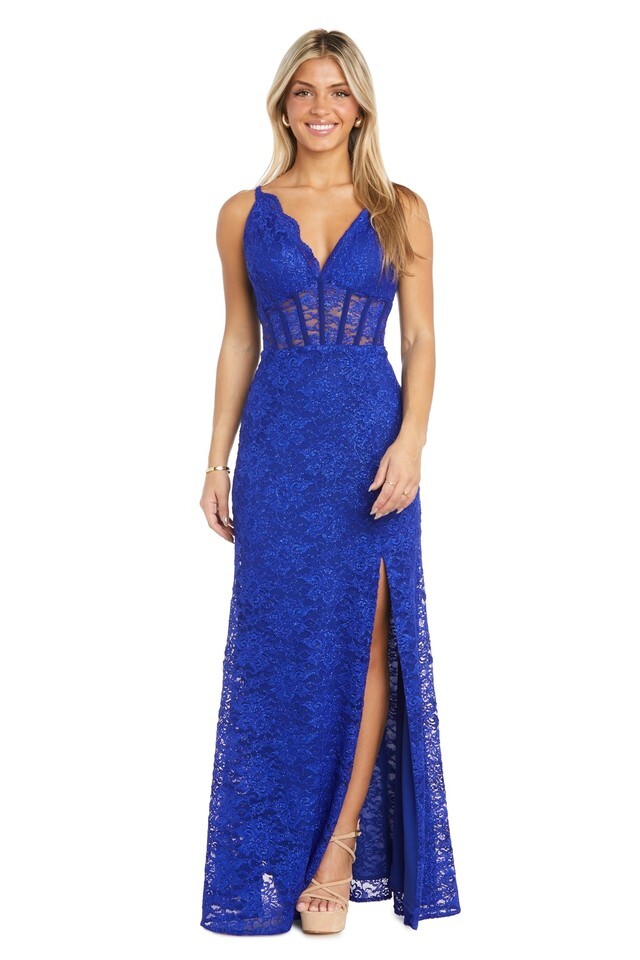 - MORGAN AND CO. Plus Size Lace Whispers Corset Gown, Royal - Size 14
