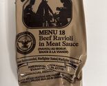 The MRE Individual Menu Single Meal 01/2024 Inspected MENU 18 by SOPAKCO is a ready-to-eat meal with a shelf life of 5 years. It features a delicious course of beef ravioli in meat sauce, making it a convenient and tasty option for camping or other outdoor activities. This single meal is a great addition to any camping cooking supplies, providing a nutritious option for sports enthusiasts and adventure seekers alike. Made in the United States, this MRE ensures quality and variety in your culinary choices while on the go.