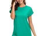 - MSHING Women's Simple Crew Neck Loose Lake Green T-Shirt Size L