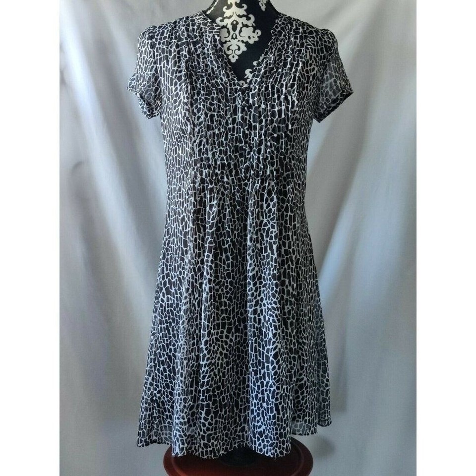 MSK Petite Animal Print Fit & Flare Dress Short Sleeve V-Neck Black/White Size 6