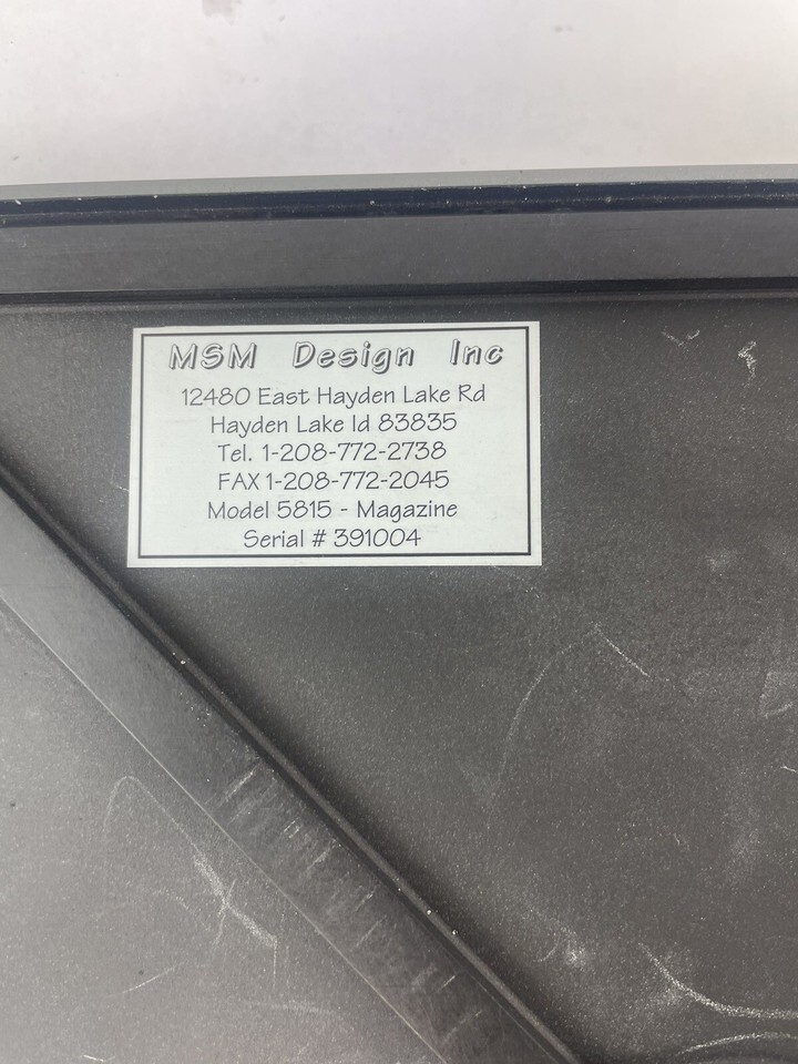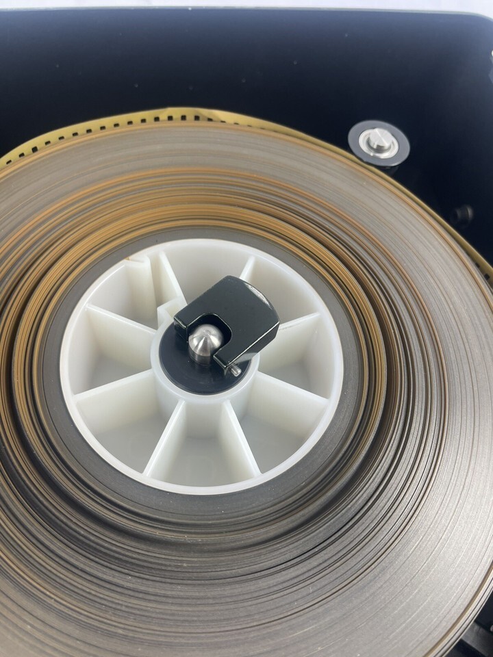 MSM Design model 5815 50ft 400ft to 1000ft. Film Reel Magazine ---acquired from a Hollywood studio ---in great condition ---This Magazine measures how much film you have left with gage indicator (empty - 50 - 100 - 200 - 300 - 400 - 500 - 750 -1000 ft) ---use 3" film core ---does not come with film. Picture show film only to showcase the magazine features ---manafactured by MSM Design inc. ( no longer in the business)