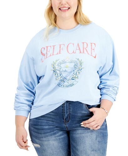 - MSRP $34 Love Tribe Trendy Plus Size Cotton Graphic Top Blue Size 1X