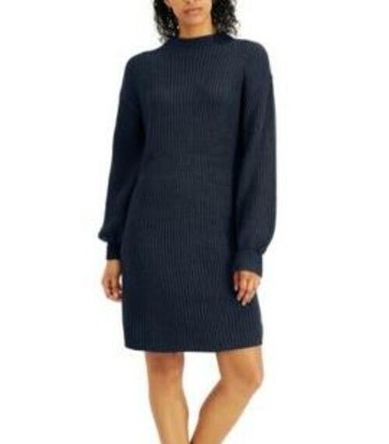 - MSRP $45 Style & Co Womens Petite Solid Mock-Neck Sweater Dress Navy Size PP