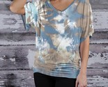 MSRP $65 Beyond This Plane Blue Tan Tie-Dye V-Neck Dolman Top Blue Size M/6-8