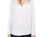 MSRP $70 Charter Club Tassel-Tie Eyelet Linen Top White Size XL