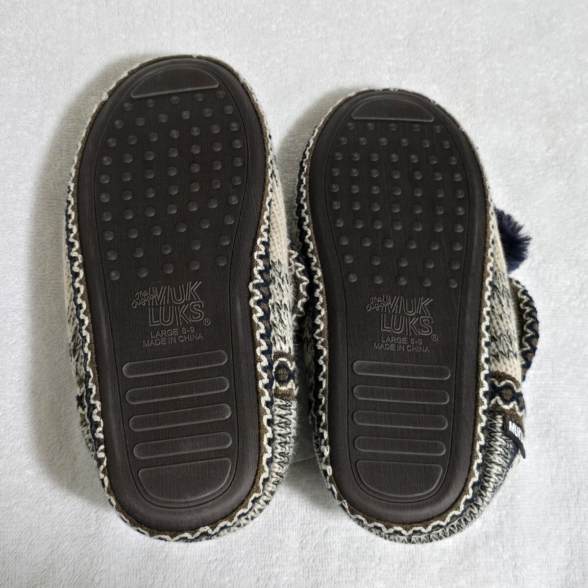 - MUK LUKS Knit Slippers Women’s L 8-9 New Faux Fur Lined Stars Pom Pom Cozy