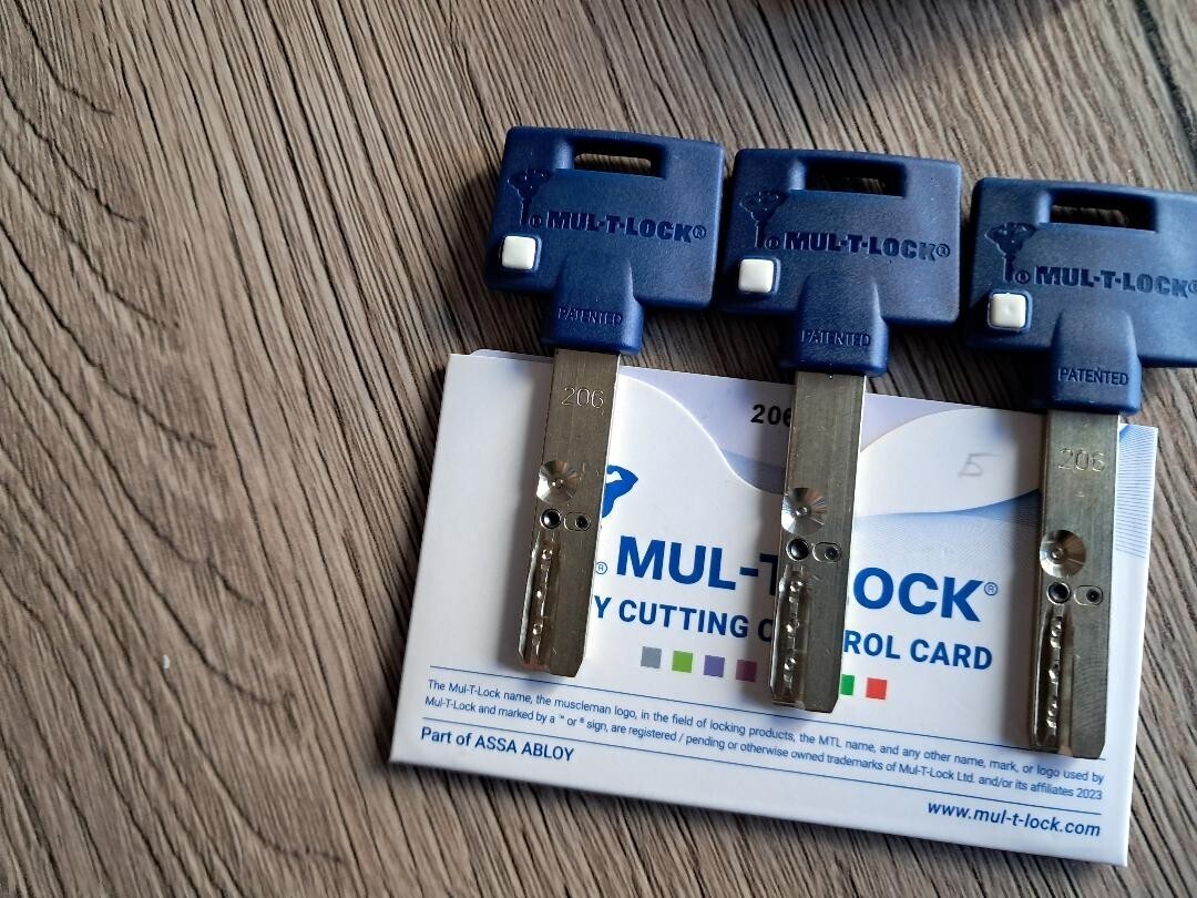 The Interactive patented key and key blank provide increased control over key cutting to achieve an even higher level of key security. Additional keys are cut after presentation of a Mul-T-Lock key card and verification of customer identity in accordance with Mul-T-Lock key cutting procedures, which may be obtained through professional Mul-T-Lock locksmiths. Interactive technology is retro-compatible with the Mul-T-Lock Classic system, allowing existing locks to be upgraded.