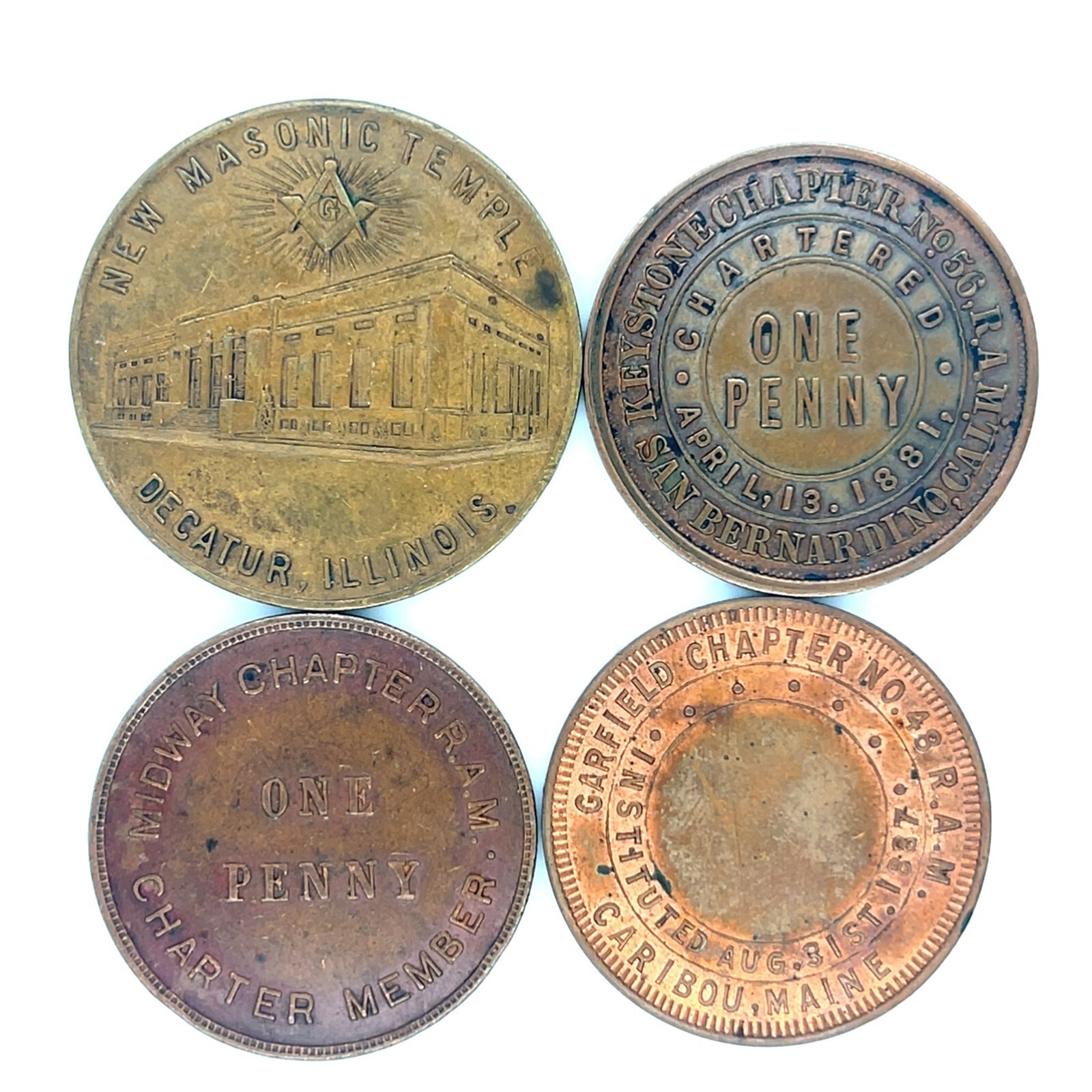 - Maçonnique " Un Centimes " Beaucoup De 4 Tokens