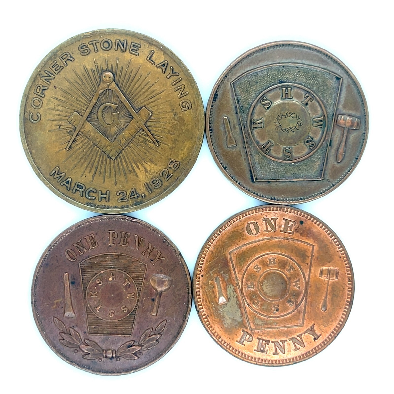 Maçonnique " Un Centimes " Beaucoup De 4 Tokens