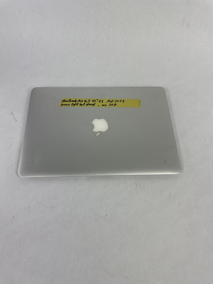 ---no power adapter ---do not know ram ---green light but dead ---No SSD ---for parts / repair Intro. June 10, 2013 Disc. April 29, 2014 Order MD760LL/A* Model A1466 (EMC 2632) Family Mid-2013 ID MacBookAir6,2