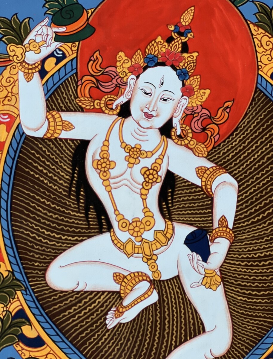 - MACHIG LABDRON ORIGINAL TIBETAN THANGKA PAINTING FOR CHOD PRACTICE SILK FRAMED
