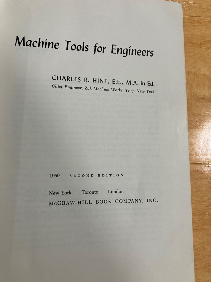 - Machine Tools for Engineers 1959 Charles R. Hine McGraw Hill Book