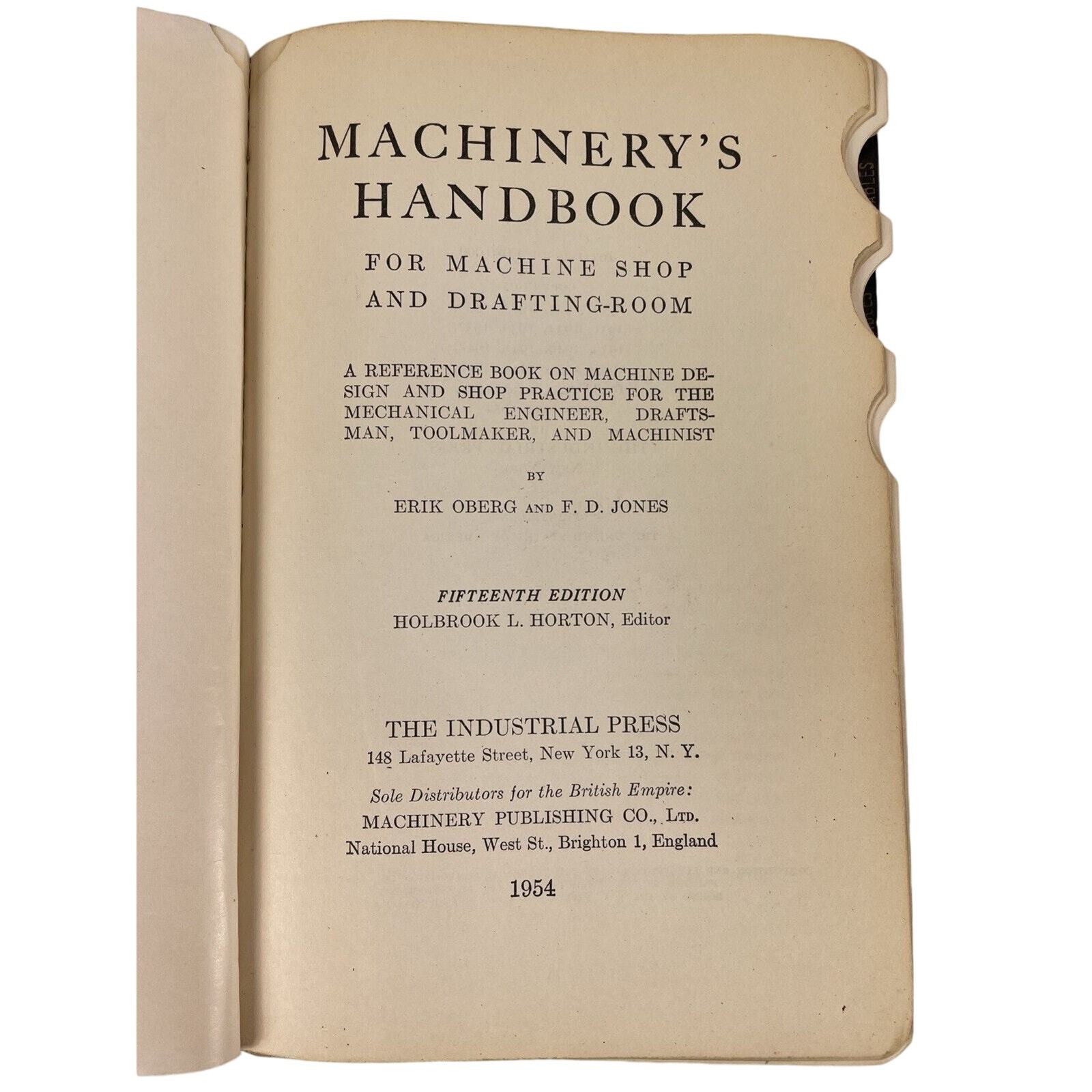 - Machinery’s Handbook 15th Edition 1954 Machine Shop & Drafting Room Reference