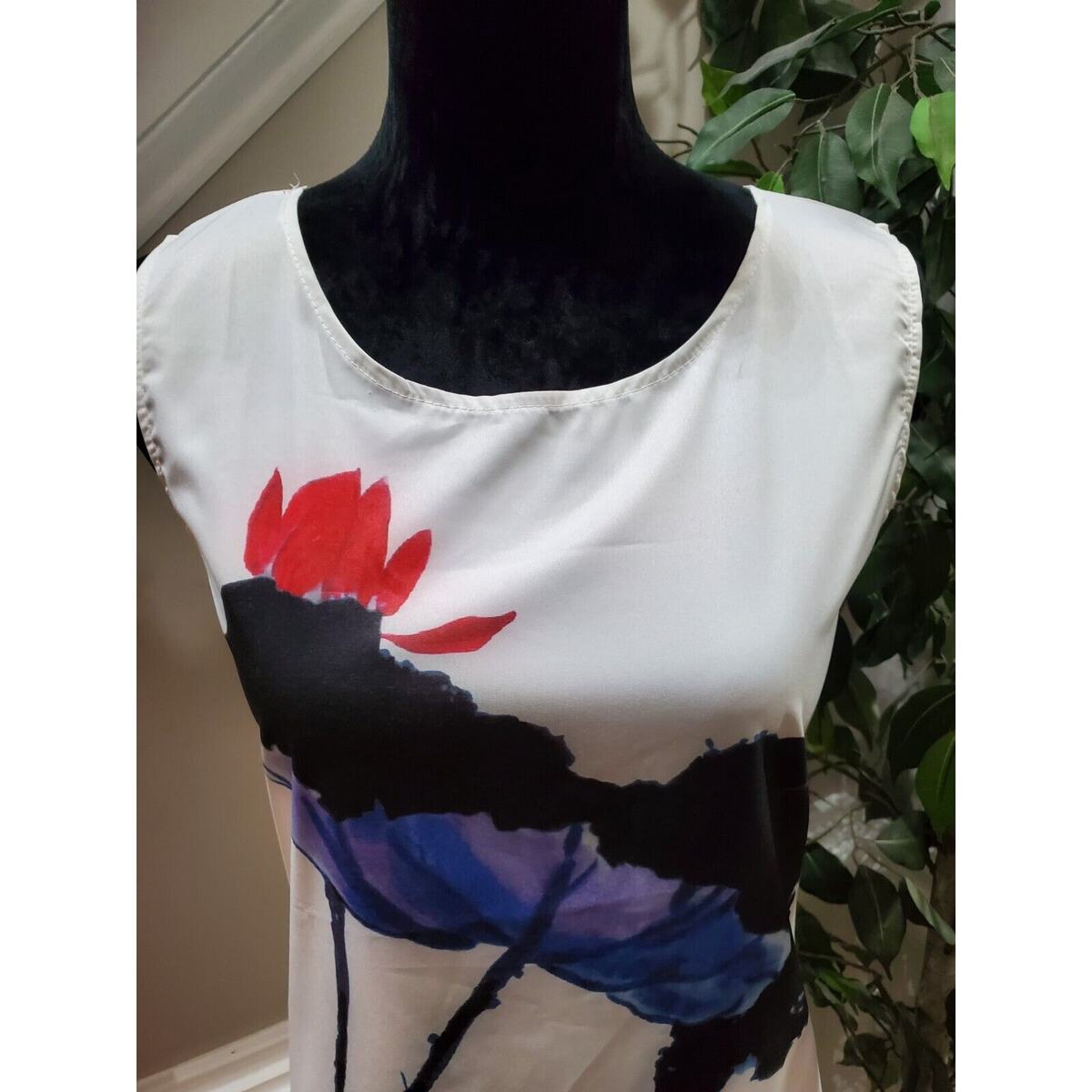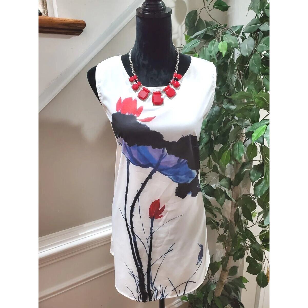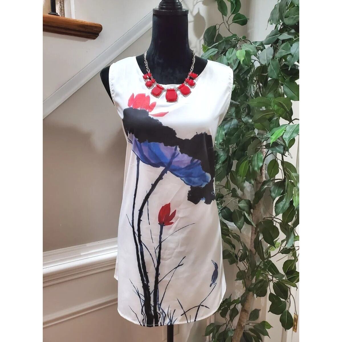- Macro Light Women's White Floral Polyester Round Neck Sleeveless Shirt Medium