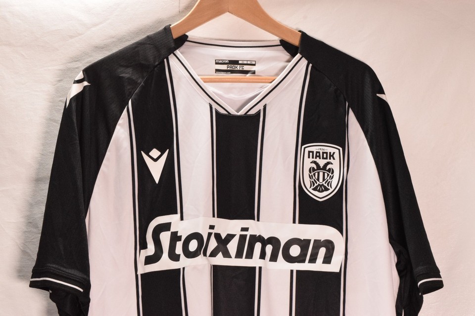 Macron Mens PAOK FC 21/22 Home Shirt SS White/Black NWT 3XL