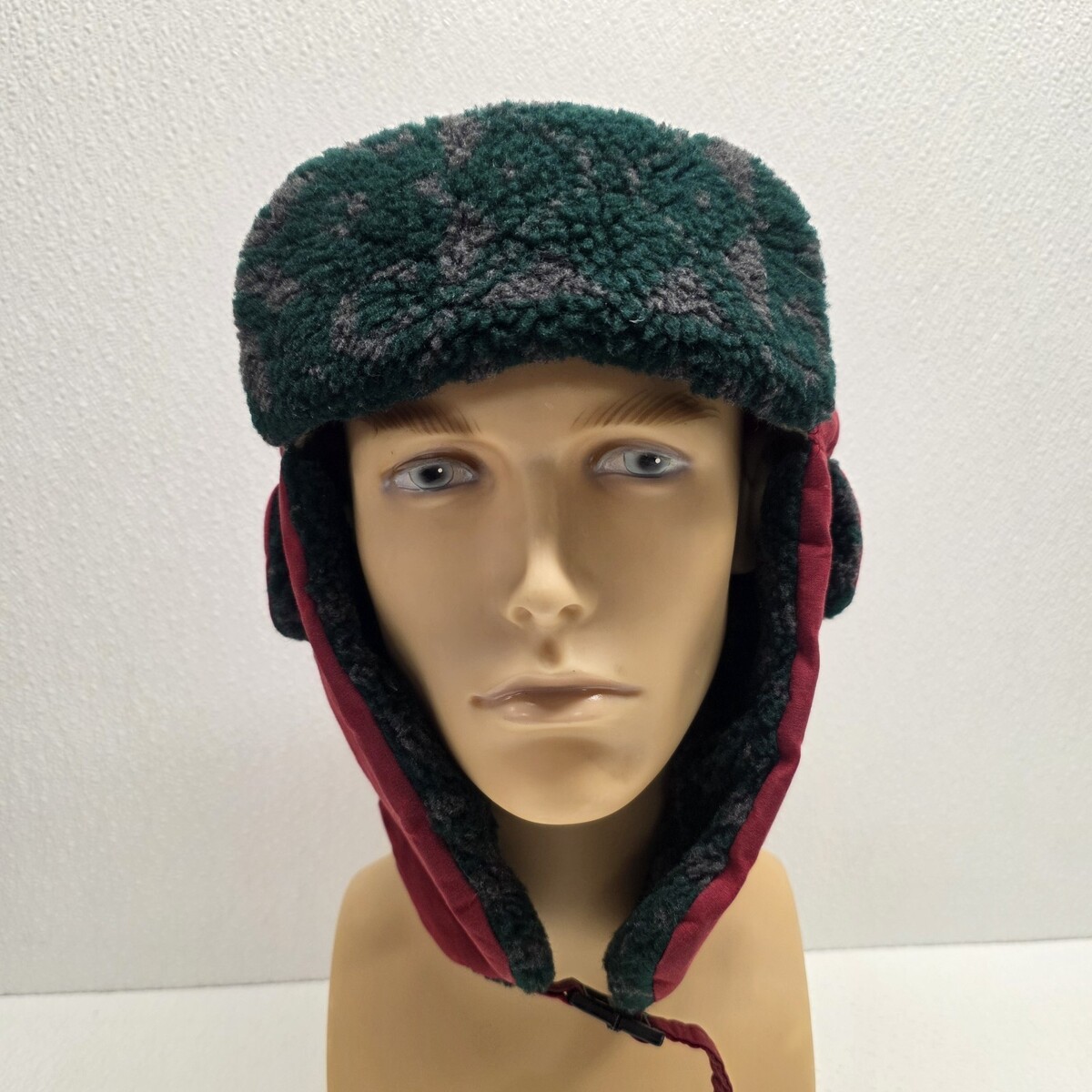 - Mad Bomber Red Trapper Hat Green Fleece Unisex Adult Ear Flaps Size Medium
