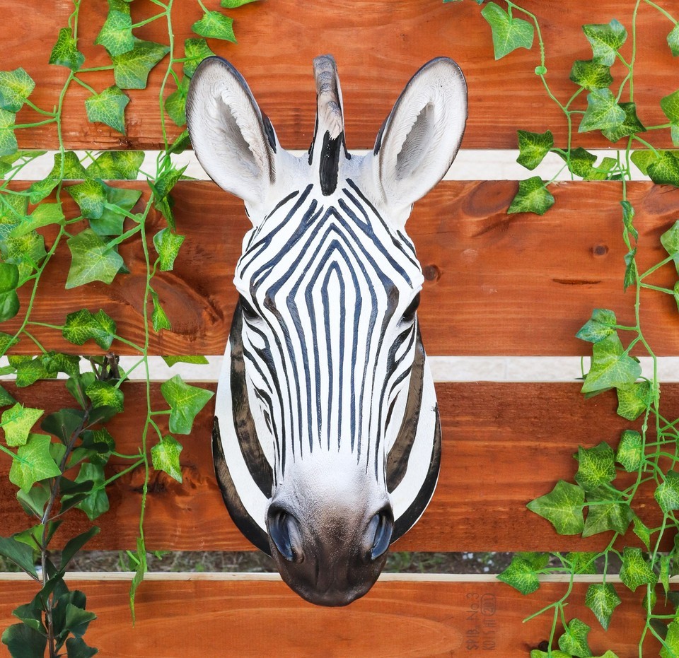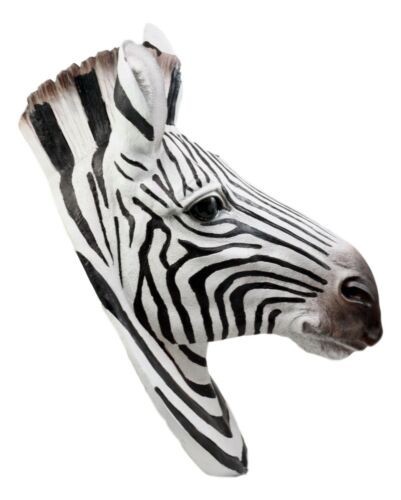 ? Looking for an exotic wall decor to grace your room? Look no further with this high quality wall plaque!!! Beyond the plains of Madagascar, in the sunset you will see a herd of zebras with different stripe signatures. This is one of them in taxidermy style, although it is completely sculpted out of resin and not a real zebra. The sculpture boasts of beautiful craftsmanship and painting done by hand to highlight the unique features of the zebra.