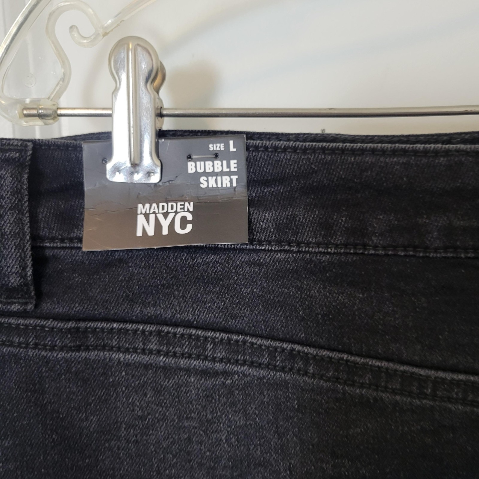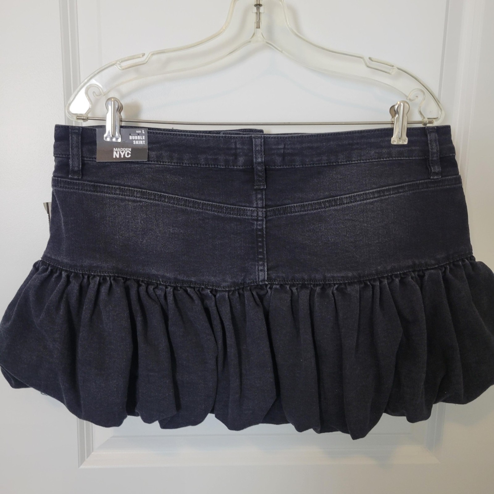 - Madden NYC Women’s Denim Bubble Miniskirt Size Large Black Wash Lined NWT