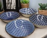 - Made In Japan Pack Of 4 Geometry Blue White Pattern Ceramic Rice Meal Soup Bowls