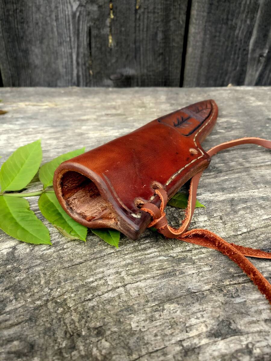 Made to order leather sheath for carving knife. Vegetable leather sheat. Handtoo
