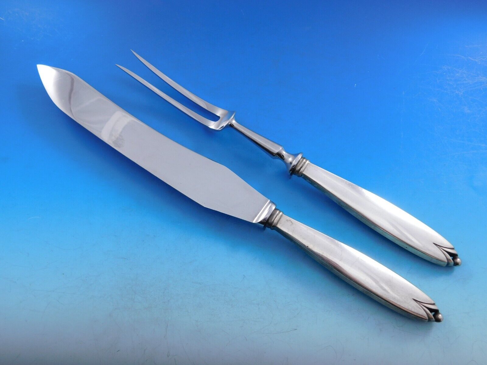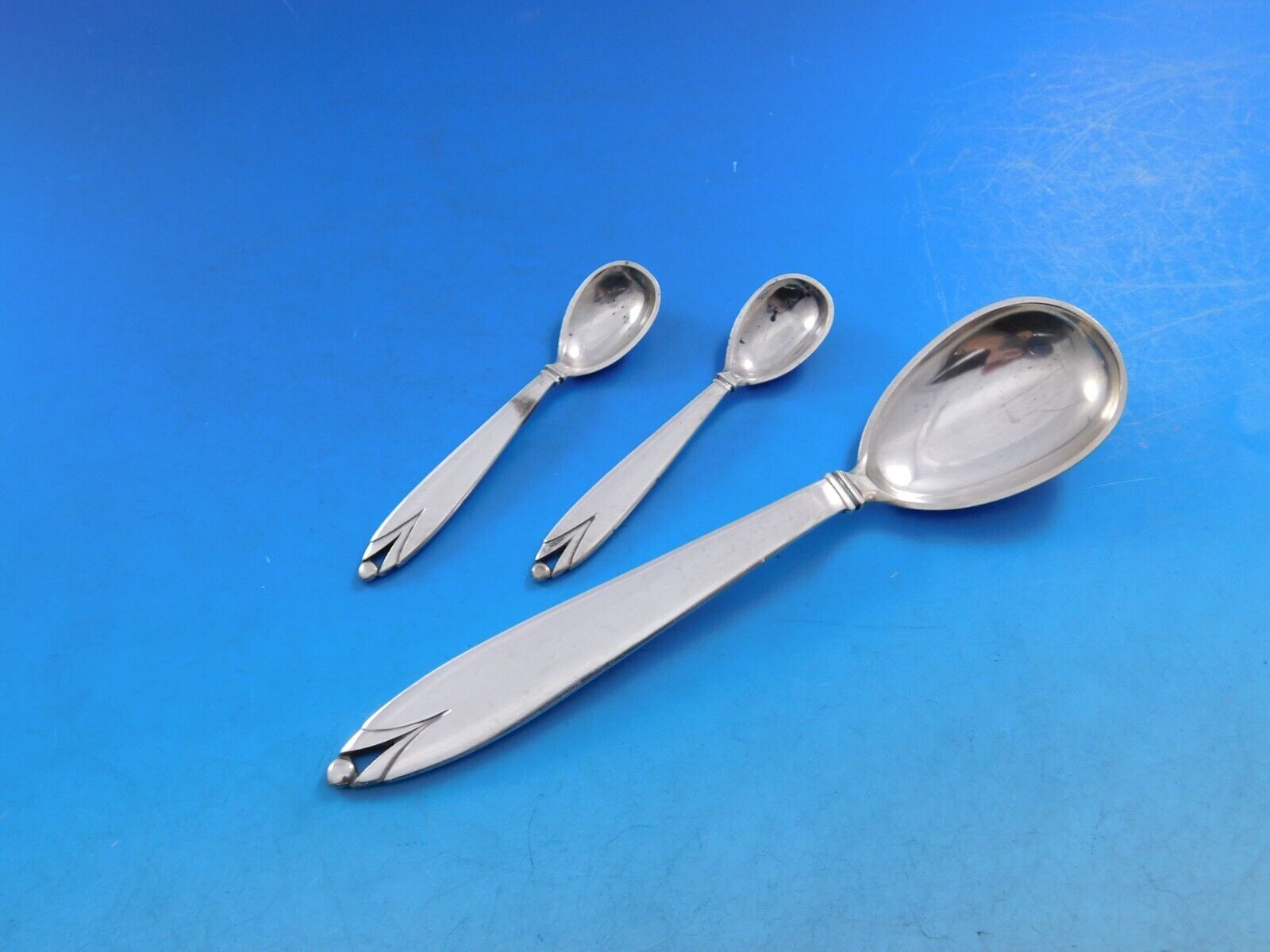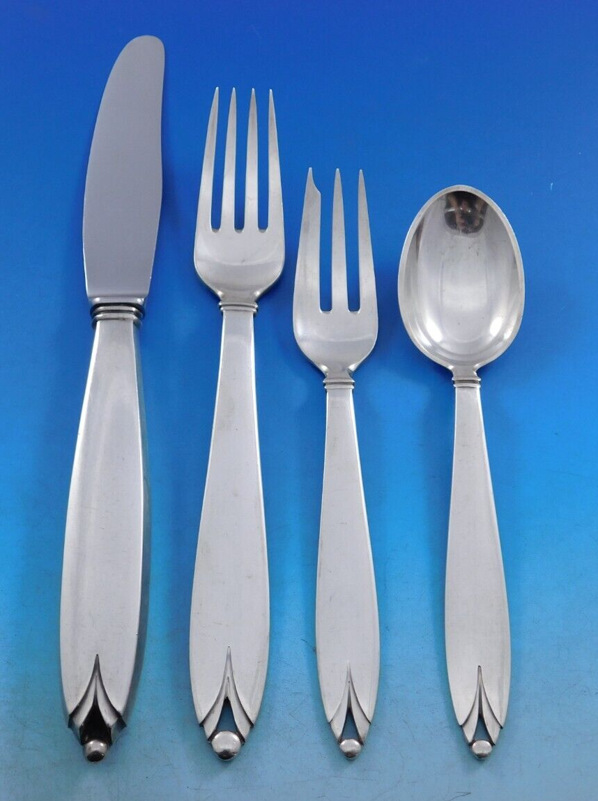Rare pierced handle with ball tip Madeleine by Peter Hertz Danish Scandinavian Moderne sterling silver Flatware set - 72 pieces. This set includes: