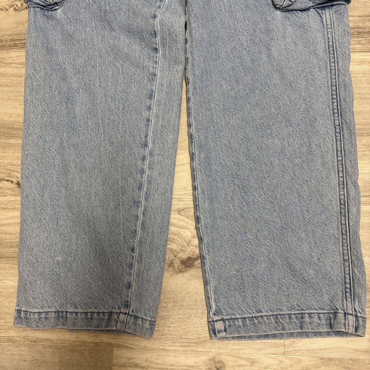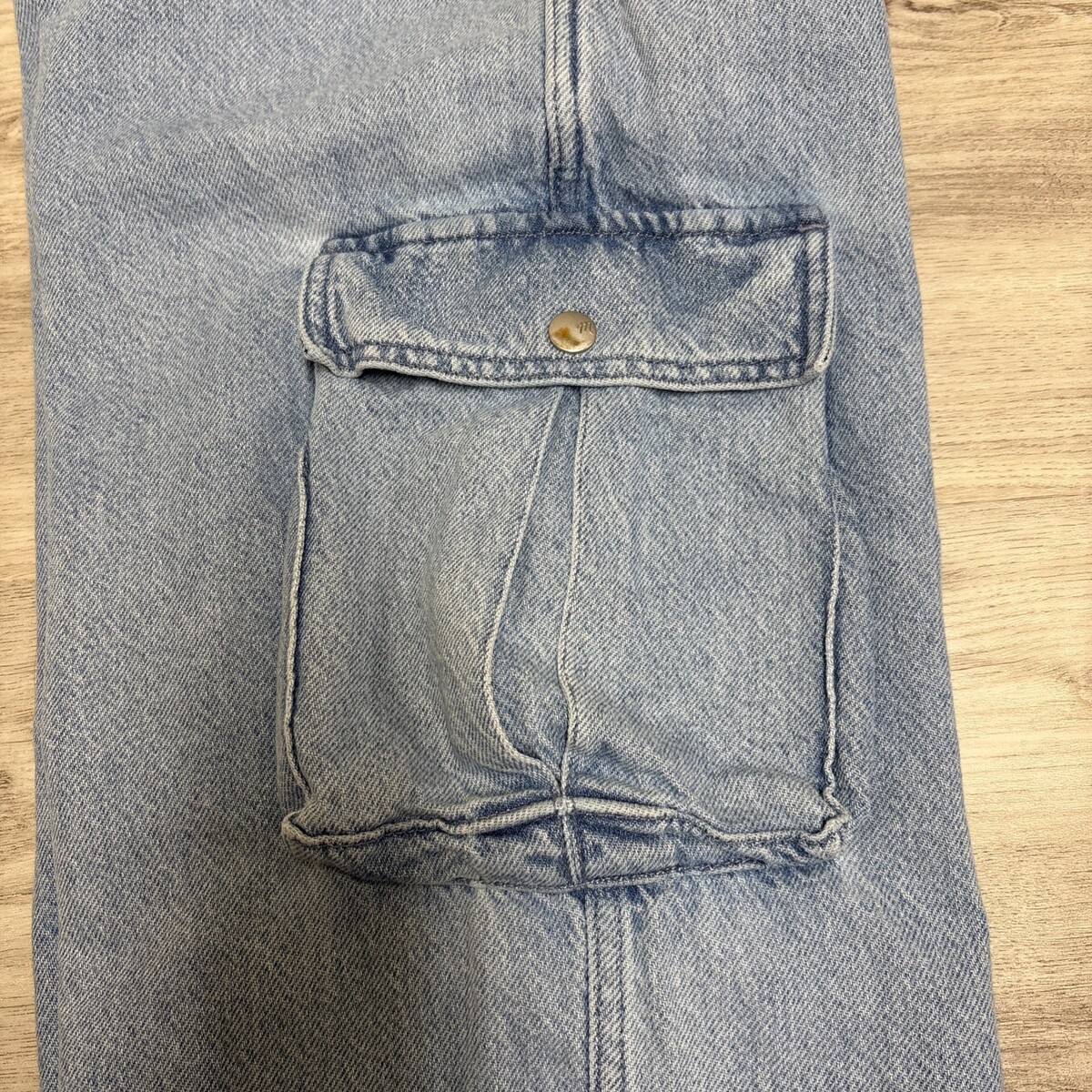 The cut: everything you love about a Low-Slung Baggy Cargo Jean with extra pockets. Designed to be worn low on the hips, this relaxed pair has a baggy wide leg. In Foster, a light wash with a perfectly worn-in feel