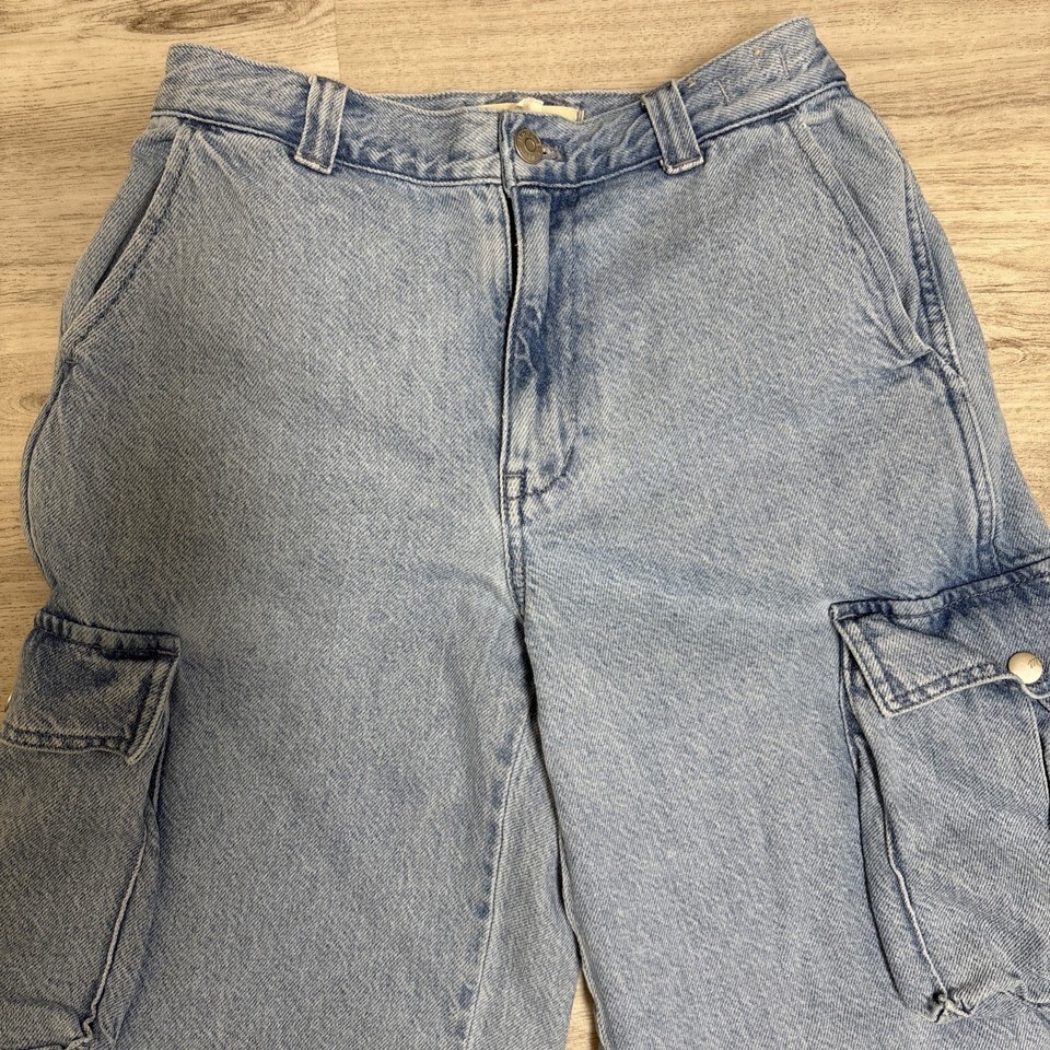 - Madewell Jeans Womens 26 Blue Low Slung Cargo Wide Leg Stone Wash Grunge Trouser