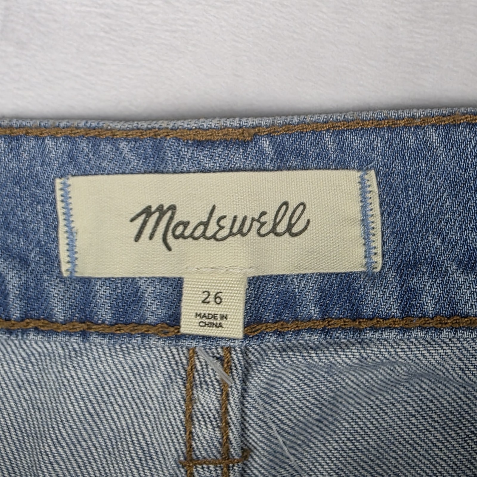 These Madewell Jeans in women's size 26 feature a relaxed and loose fit with a flare style, making them perfect for a bohemian or 90s-inspired look. The blue denim fabric is 100% cotton with a medium wash, while the pants have a high rise and a 5-pocket design with a coin pocket for added convenience. Easy to care for with machine washable instructions, these jeans also offer comfort and stretch for all-day wear. Ideal for any season, these stylish and versatile pants are a must-have addition to any woman's wardrobe.