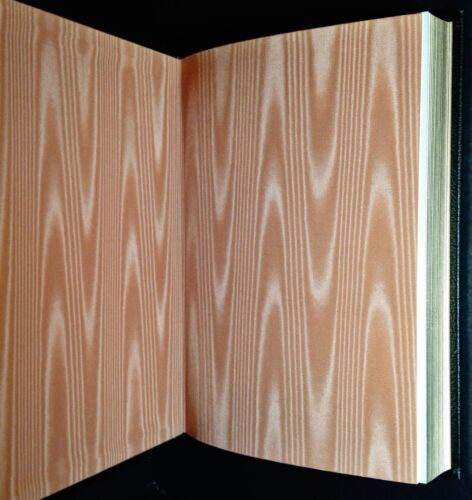 gilded page ends, acid-neutral paper, Moire fabric endsheets, and evocative