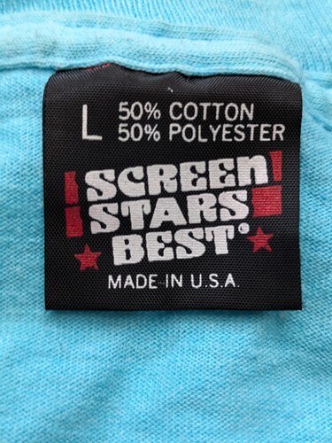 In vendita e usata con imperfezioni la maglietta dello Speedway della 500 Miglia di Indianapolis del 1990 Blue Screen Star 50 50 USA Luyendyk di taglia grande.