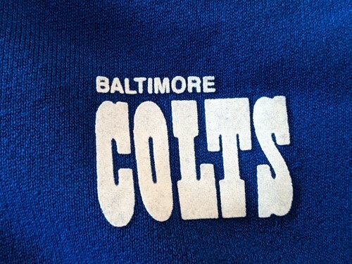 In vendita e una polo blu vintage dei Baltimore Colts degli anni '60 usata di Ban Lon per Garan taglia XL NFL.