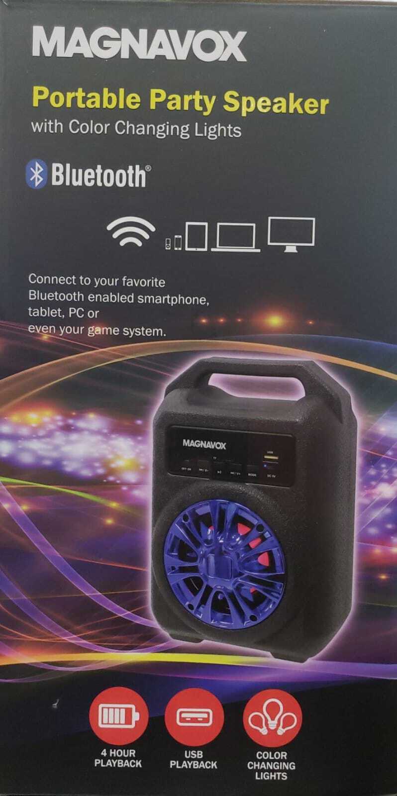 - Magnavox Bluetooth Portable Party Speaker With Color Changing Lights Black
