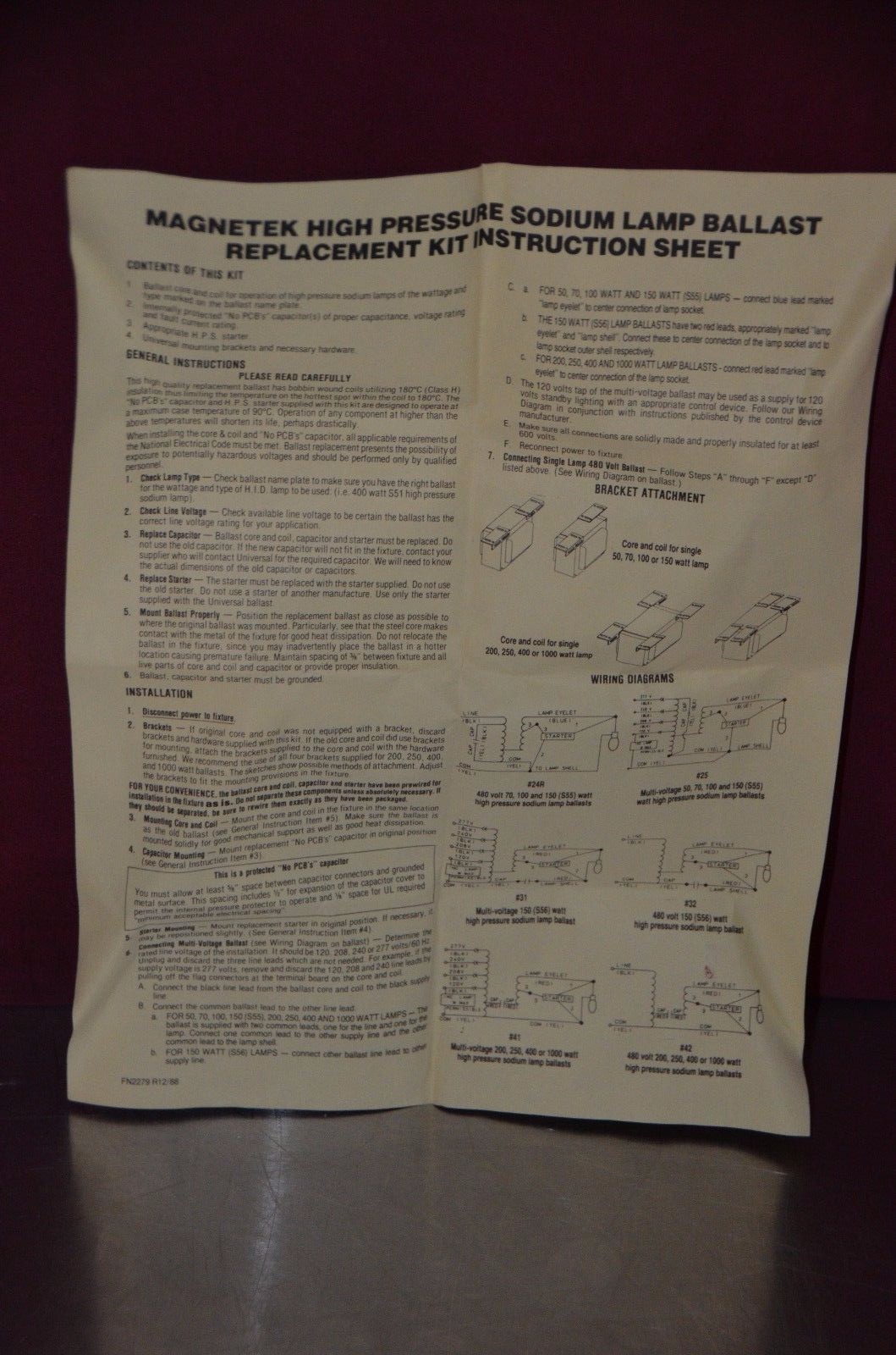 - Magnetek 1230-93U-500K HPS Ballast Replacement Kit NOS / 30 DAY GUARANTEE