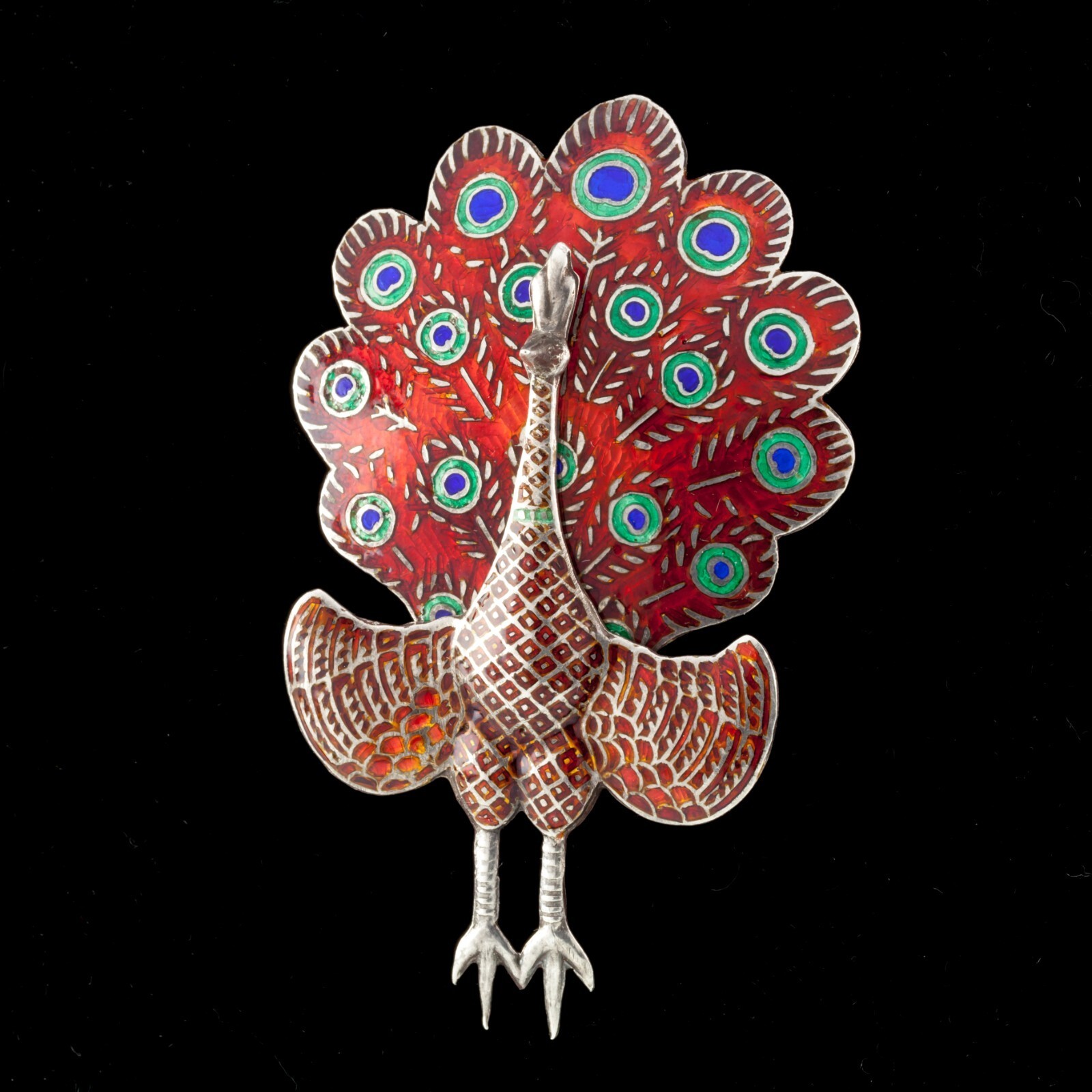 Magnifique Argent Sterling Siam Coloré Paon Émail Broche