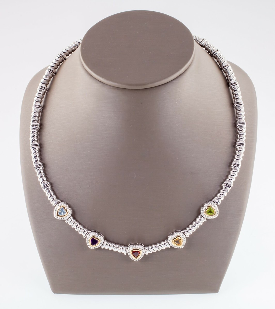 Magnifique ensemble de colliers de pierres precieuses multicolores veritables En argent sterling plaque rhodium