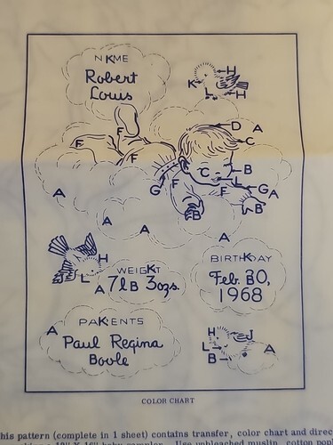 - Mail Order Vtg 1975 Multi-Stamp Transfer Pattern Design 7340 UNUSED Baby Sampler