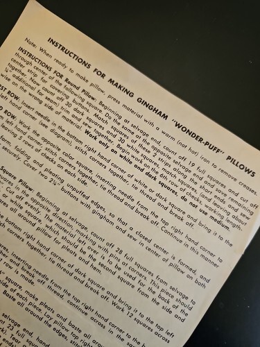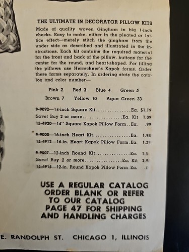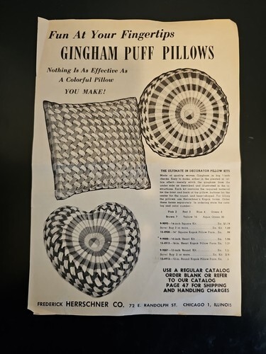 - Mail Order Vtg 60s Frederick Herrschner Co Gingham Puff Pillows Instruction