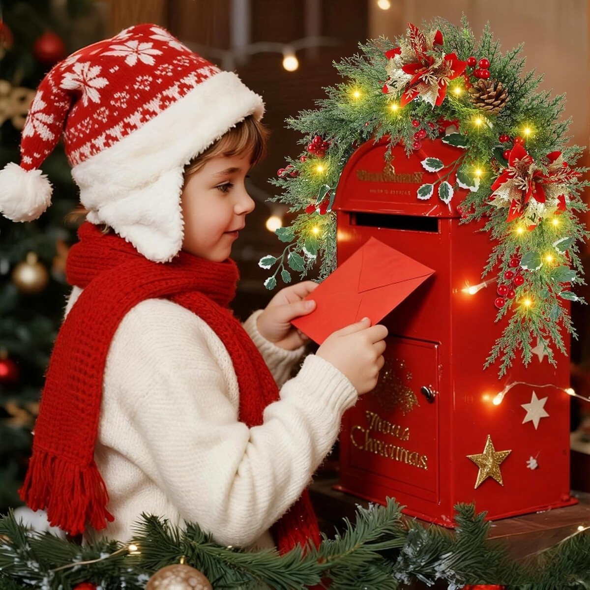 Reusable Seasonal Decor with Lasting Appeal: Made with sturdy plastic materials and detailed textures, this Christmas mailbox swag is designed for reuse over multiple seasons. When the holidays are over, store it in a cool, dry place?ready to help celebrate next year as part of your traditional mailbox and outdoor Christmas decorations.
