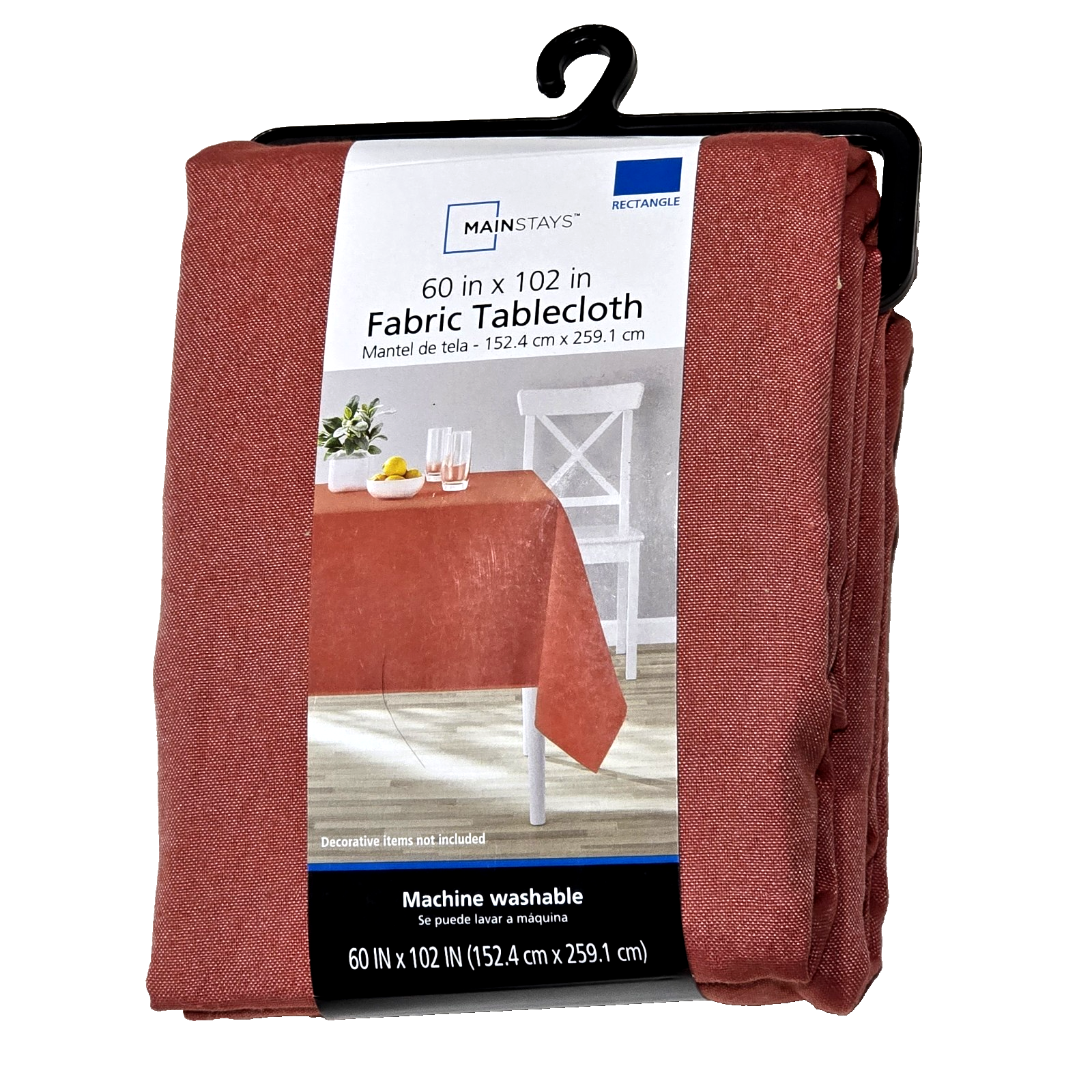 - Mainstays 60x102in Fabric Tablecloth Machine Wash Dusty Cedar Red