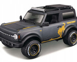 1/24 scale diecast model of the 2021 Ford Bronco Badlands Dark Gray Metallic finish with gold graphics Rugged roof rack accent Officially licensed Maisto Design Series collectible